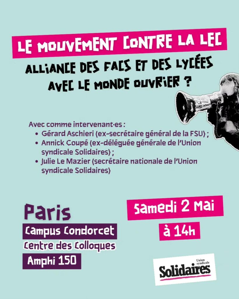 14h : Le mouvement contre la LEC : alliance des facs et des lycées avec le monde ouvrier?