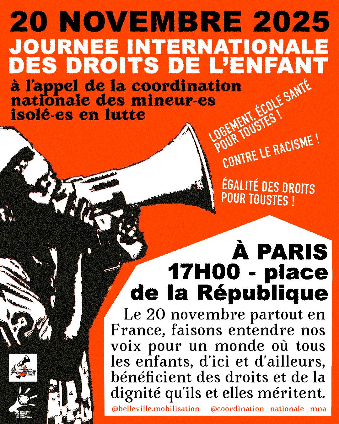 20 novembre 2025 : Journée internationale des droits de l’enfant, mobilisons-nous à l’appel de la coordination nationale des mineur⋅es isolé⋅es en lutte