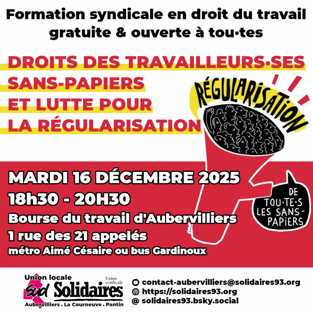 Aubervilliers, cours de droit du travail : droits des travailleur⋅ses sans-papiers et lutte pour la régularisation, mardi 16 décembre 2025