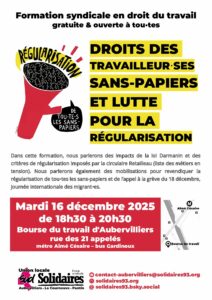 Aubervilliers, cours de droit du travail : droits des travailleur⋅ses sans-papiers et lutte pour la régularisation, mardi 16 décembre 2025