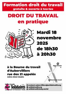 Aubervilliers, cours de droit du travail : le droit du travail en pratique, mardi 18 novembre 2025