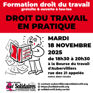 Aubervilliers, cours de droit du travail : le droit du travail en pratique, mardi 18 novembre 2025