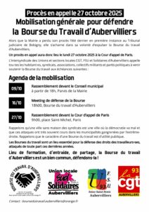 Bourse du travail d’Aubervilliers en procès en appel le 27 octobre 2025 : agenda de la mobilisation