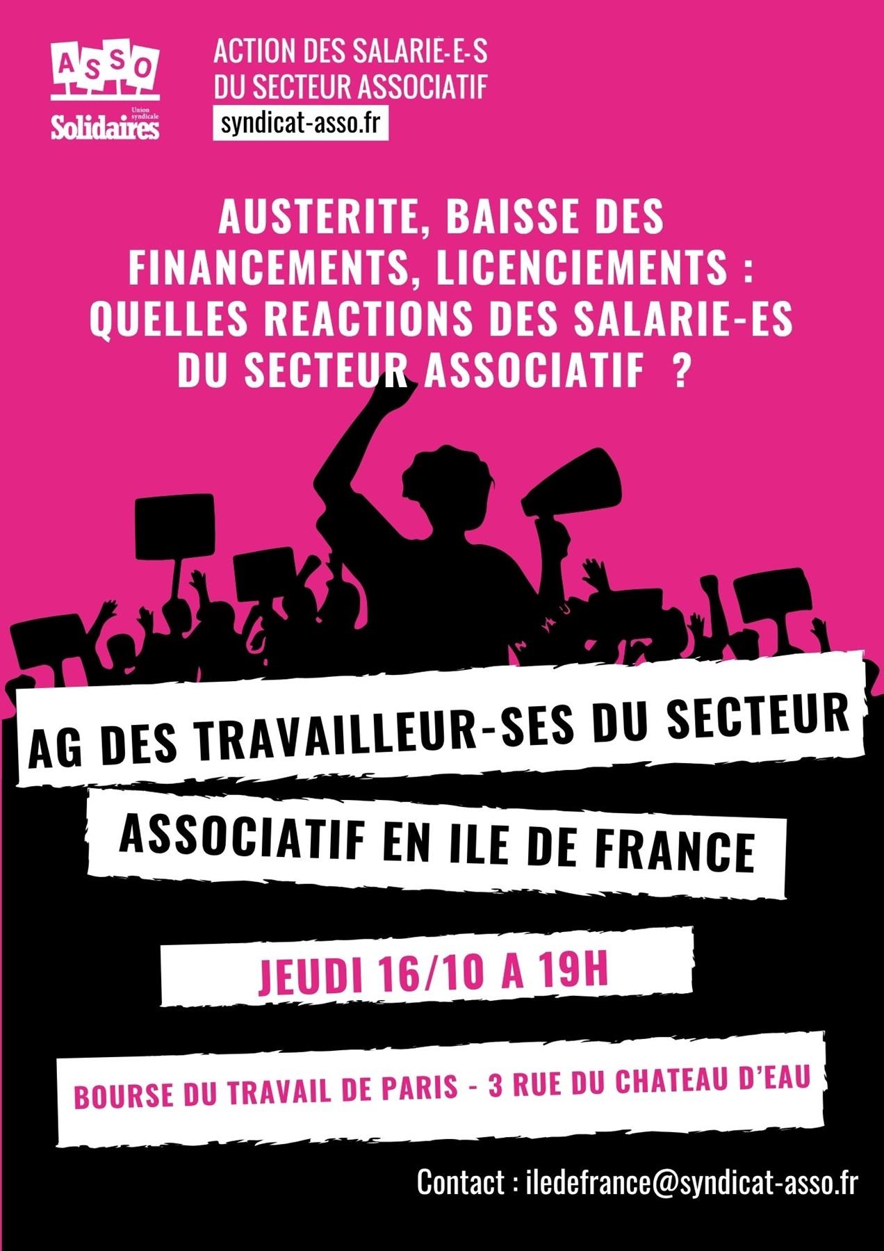 Assemblée générale des travailleur-ses du secteur associatif 16 octobre 202515 octobre 2025UD 93 Quand 16 octobre 2025 19:00 Ajouter au Calendrier Télécharger ICS Calendrier Google iCalendar Office 365 Outlook Live Où Bourse du travail de Paris - centrale 3 rue du château d'eau, Paris, 75010 Type d’évènement Agenda