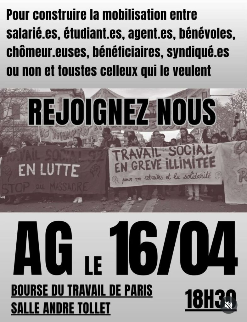Assemblée générale du travail social en lutte 16 avril 202613 avril 2026UD 93 Quand 16 avril 2026 18:30 Ajouter au Calendrier Télécharger ICS Calendrier Google iCalendar Office 365 Outlook Live Où Bourse du travail de Paris - centrale 3 rue du château d'eau, Paris, 75010 Type d’évènement Agenda