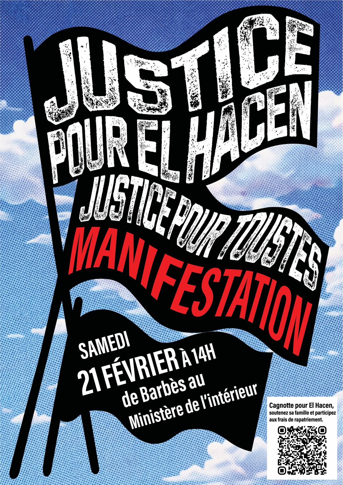 Manifestation Justice pour El Hassen Diarra 21 février 202618 février 2026UD 93 Quand 21 février 2026 14:00 Ajouter au Calendrier Télécharger ICS Calendrier Google iCalendar Office 365 Outlook Live Où Paris Paris, Paris Type d’évènement Agenda