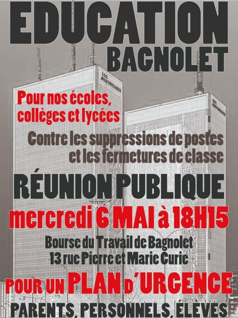 Réunion publique contre les fermetures de classe 6 mai 202626 avril 2026UD 93 Quand 6 mai 2026 18:15 Ajouter au Calendrier Télécharger ICS Calendrier Google iCalendar Office 365 Outlook Live Où Bourse du Travail de Bagnolet 13 rue Pierre et Marie Curie, Bagnolet, 93170