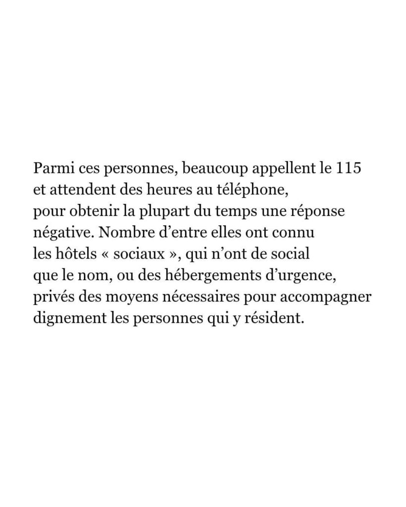 Cette mobilisation est l’occasion de remettre au centre ce qui devrait être une priorité absolue : la lutte contre le sans-abrisme, l’accès à un logement digne et le renforcement d’un hébergement d’urgence aujourd’hui à bout de souffle.
