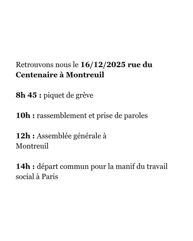 Retrouvons nous : le 16/12/2025 rue du Centenaire à Montreuil / 8h45 : piquet de grève