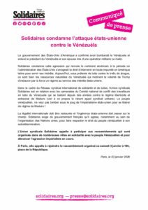 Solidaires_condamne_lattaque_etats-unienne_contre_le_Venezuela